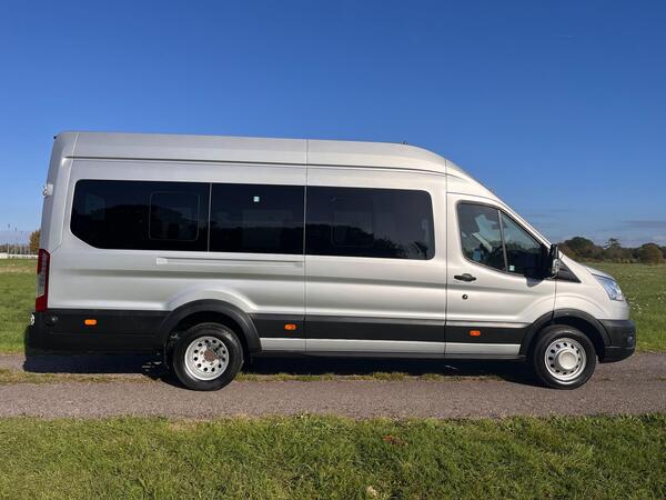 Look no further than this 2022 Ford Transit Minibus which is a standout choice, freshly returned from our leasing programme. It boasts a robust 2.0 litre EcoBlue diesel engine, meeting Euro 6 emissions standards, and features rear wheel drive for enhanced load carrying. The L4 H3 body style offers ample space, complemented by the 17 seat configuration and dual rear wheels for stability. Notable features include automatic headlights, adaptive cruise control with forward alert, and an ICE Pack 17 which includes Bluetooth connectivity for seamless communication and entertainment. The minibus is PSV Tested and also comes with a Tachograph, Front & Rear Parking Sensors, Luggage Racks, COC, DAB Radio, Bluetooth, Spare Key, Six Months Warranty or 6000 Miles. This particular Transit is also recognised for its low CO2 emissions, indicating a more environmentally conscious performance. Furthermore, its placement in a low insurance group suggests that running costs will be more affordable compared to similar vehicles. These highlights demonstrate the excellent value and efficiency this well maintained Ford Transit Minibus offers. We have a constant supply of PSV-ready/school minibuses available for sale so please call the office if you require any further details or an up to date stock list.