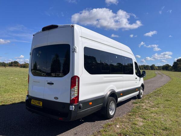 Look no further than this 2022 Ford Transit Minibus which is a standout choice, freshly returned from our leasing programme. It boasts a robust 2.0 litre EcoBlue diesel engine, meeting Euro 6 emissions standards, and features rear wheel drive for enhanced load carrying. The L4 H3 body style offers ample space, complemented by the 17 seat configuration and dual rear wheels for stability. Notable features include automatic headlights, adaptive cruise control with forward alert, and an ICE Pack 17 which includes Bluetooth connectivity for seamless communication and entertainment. The minibus is PSV Tested and also comes with a Tachograph, Front & Rear Parking Sensors, Luggage Racks, COC, DAB Radio, Bluetooth, Spare Key, Six Months Warranty or 6000 Miles. This particular Transit is also recognised for its low CO2 emissions, indicating a more environmentally conscious performance. Furthermore, its placement in a low insurance group suggests that running costs will be more affordable compared to similar vehicles. These highlights demonstrate the excellent value and efficiency this well maintained Ford Transit Minibus offers. We have a constant supply of PSV-ready/school minibuses available for sale so please call the office if you require any further details or an up to date stock list.